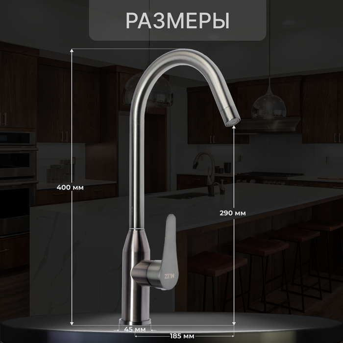 Смеситель для кухни ZEIN Z50151, однорычаж., картридж 35 мм, излив 15 см, без подводки, хром