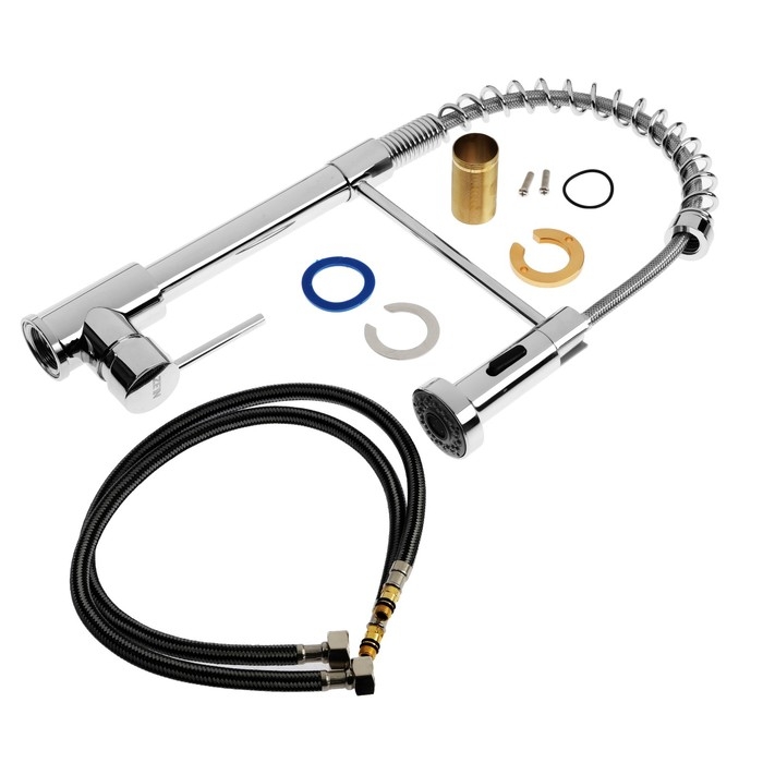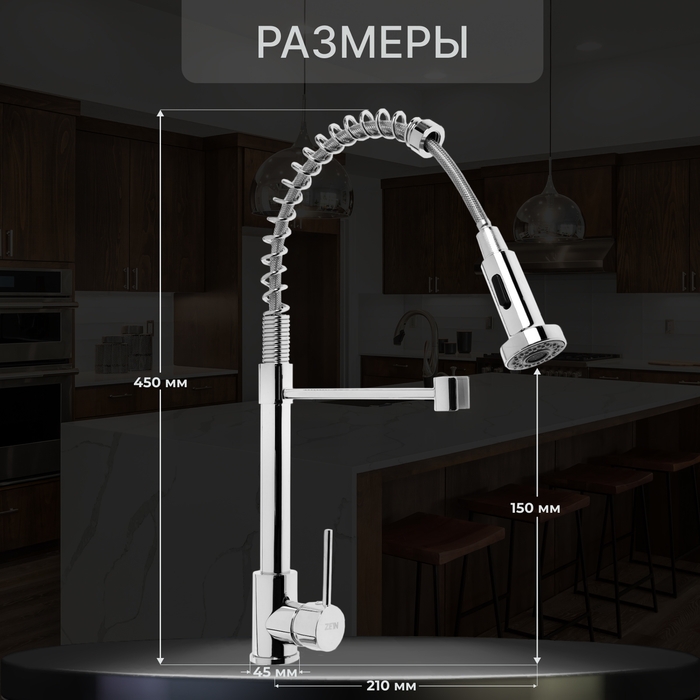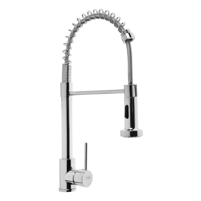 Смеситель для кухни ZEIN Z3824, однорычажный, гибкий излив на пружине, аэратор 2 режима,хром