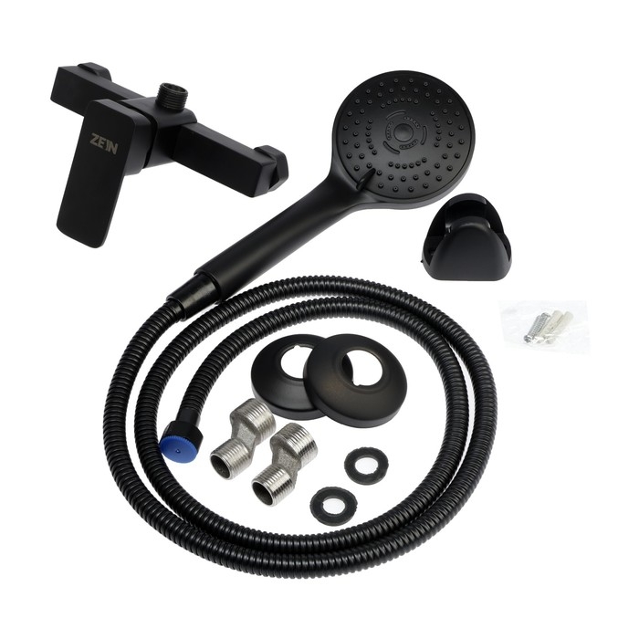 Смеситель для душа ZEIN Z3844, однорычажный, душевой набор, лейка 5 режимов, черный