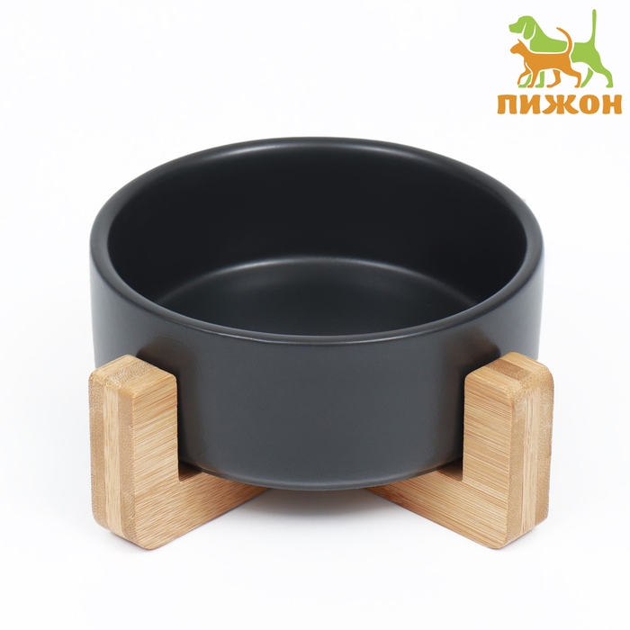 Миска керамическая на подставке 450 мл 13 х 5 см, чёрная
