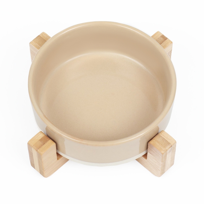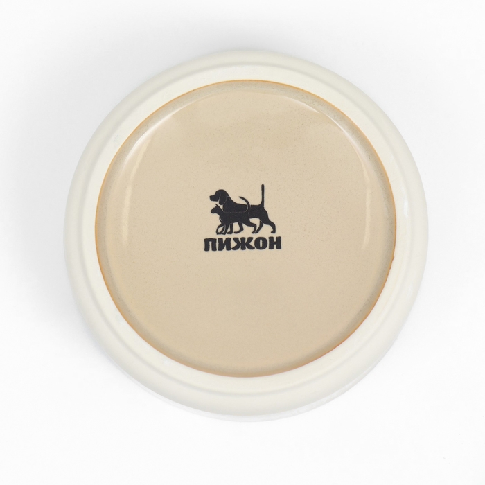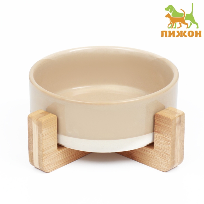 Миска керамическая на подставке 450 мл 13 х 5 см бежевая с белым
