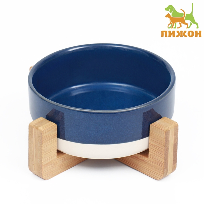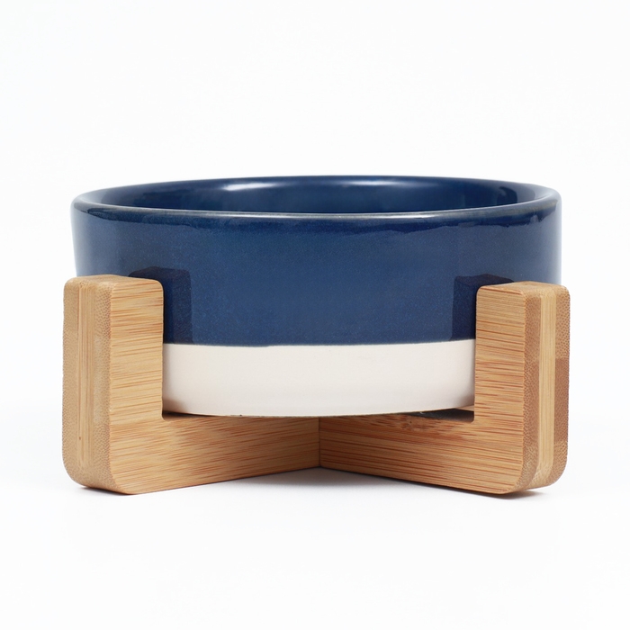 Миска керамическая на подставке 450 мл 13 х 5 см синяя с белым