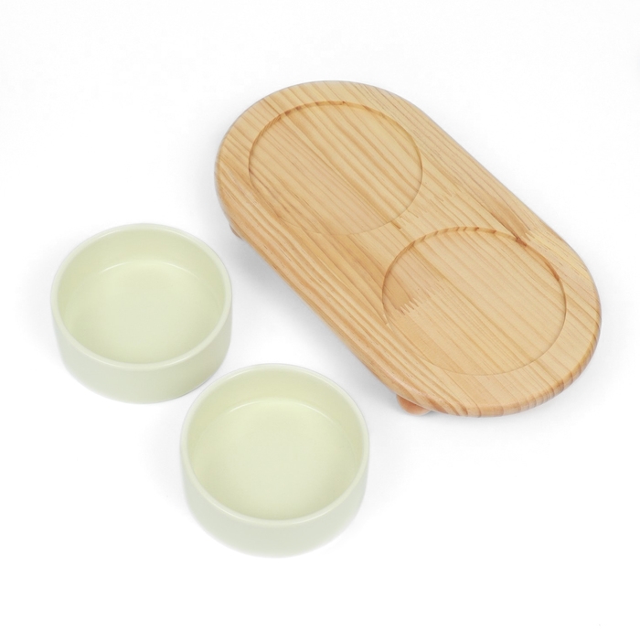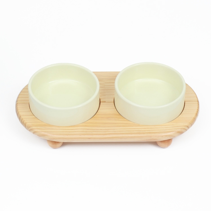 Миски керамические двойные на подставке 2 х 450 мл 28,5 х 15,5 х 7 см, светло-зелёный