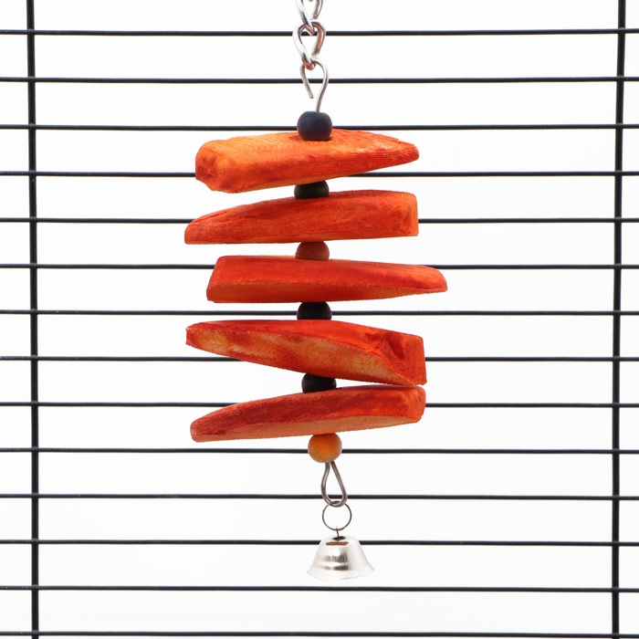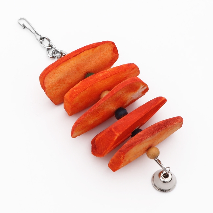 Игрушка для птиц с панцирем каракатицы и бусами, 20 х 6 см, оранжевая