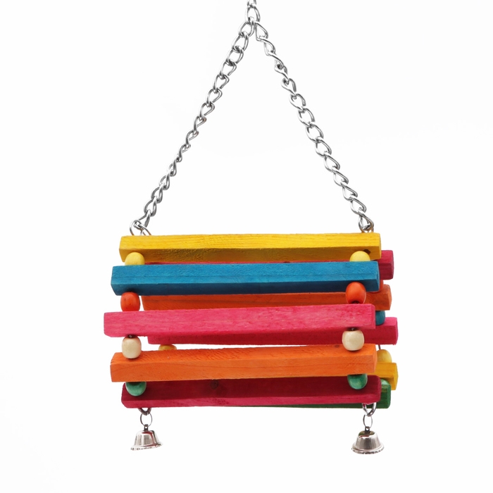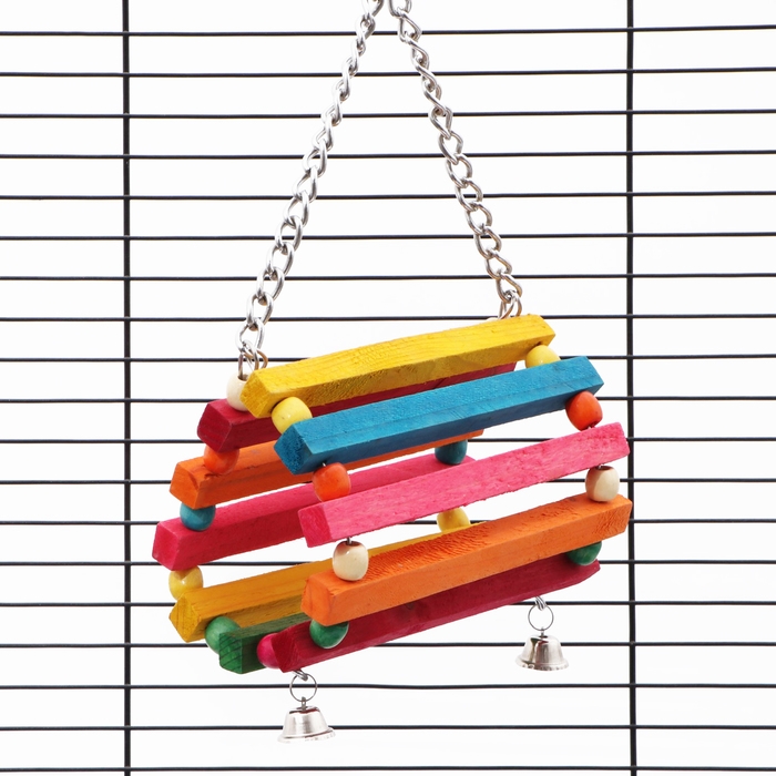 Эти качели легко крепятся к верхней части клетки, создавая уютное пространство для игры и отдыха. Колокольчики, встроенные в конструкцию, издают приятные звуки, которые не оставят вашего питомца равнодушным. Ваш попугай или канарейка с удовольствием будут проводить время на этих качелях, активно взаимодействуя с окружающим миром.