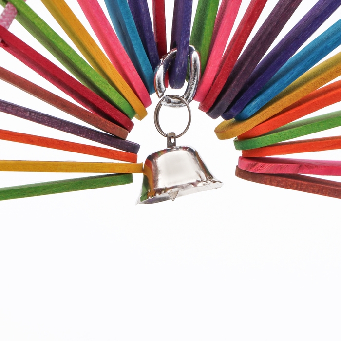 Игрушка для птиц "Веер" с колокольчиком, разноцветная, 25 х 20 см