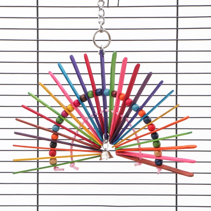 Позвольте вашему пернатому другу наслаждаться не только свободой, но и увлекательными играми с игрушкой «Веер с колокольчиком». Эта яркая, разноцветная игрушка, выполненная из натурального дерева и металла, станет идеальным дополнением к клетке вашей птицы.