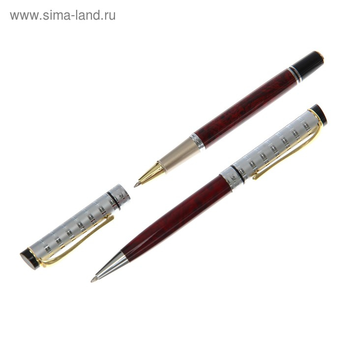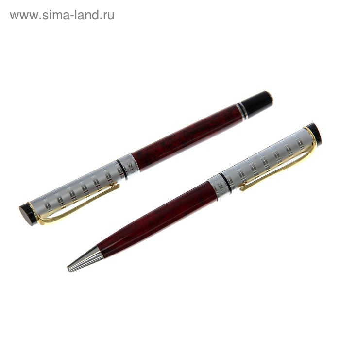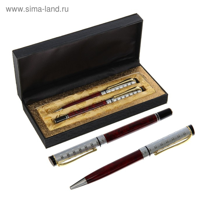 Ручки подарочные Calligrata "Престиж" 2 штуки: капиллярная, шариковая поворотная, в кожзам футляре, мрамор