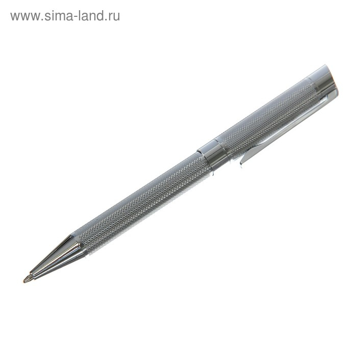 Ручка подарочная, шариковая, в кожзам футляре, поворотная, VIP корпус, серебряный корпус