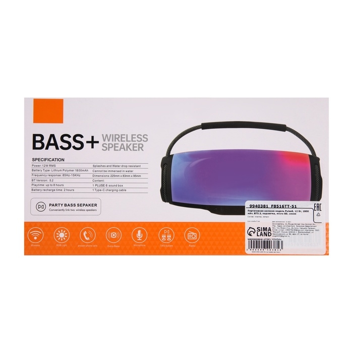 Портативная колонка Pulse6, 12 Вт, 1800 мАч. BT5.3, подсветка, micro SD, синяя
