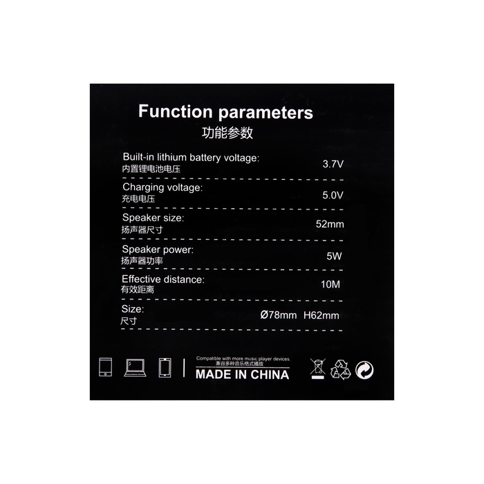 Портативная колонка l59, 5 Вт, 500 мАч, BT5.0, подсветка, чёрная