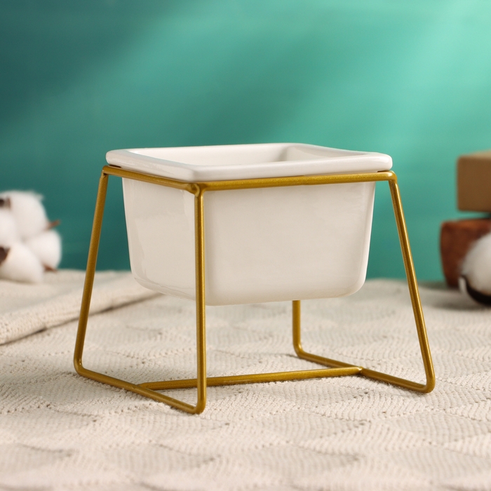 Горшок "Куб" на подставке, золото, 12х9х9см