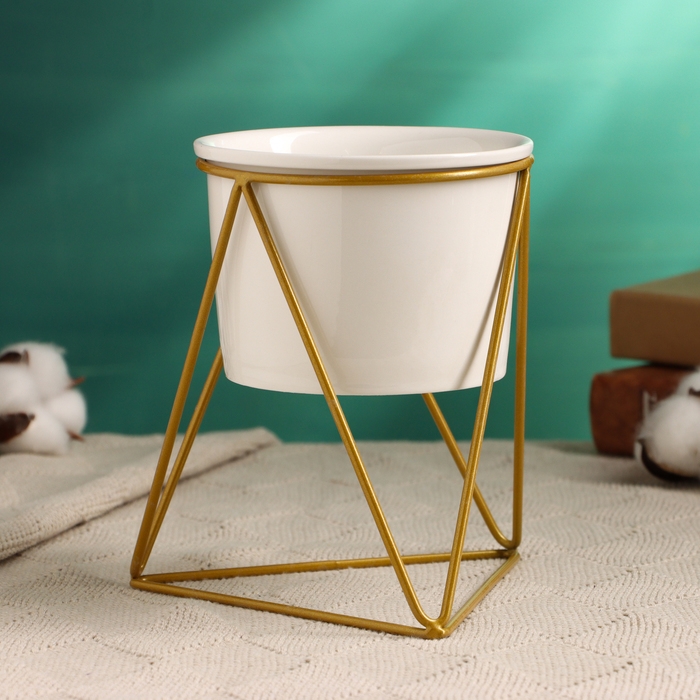 Горшок на подставке "Грани" белый с золотом, 14х11х15см
