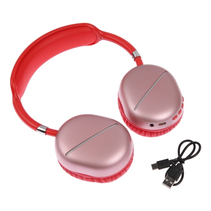 Наушники AKZ MAX10, беспроводные, полноразмерные, микрофон, подсветка, красные