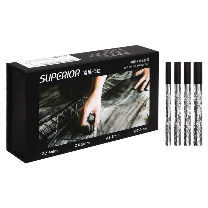 Уголь натуральный 25шт+25шт+18шт+15шт, длина-7-8 см, в картонной коробке, черный