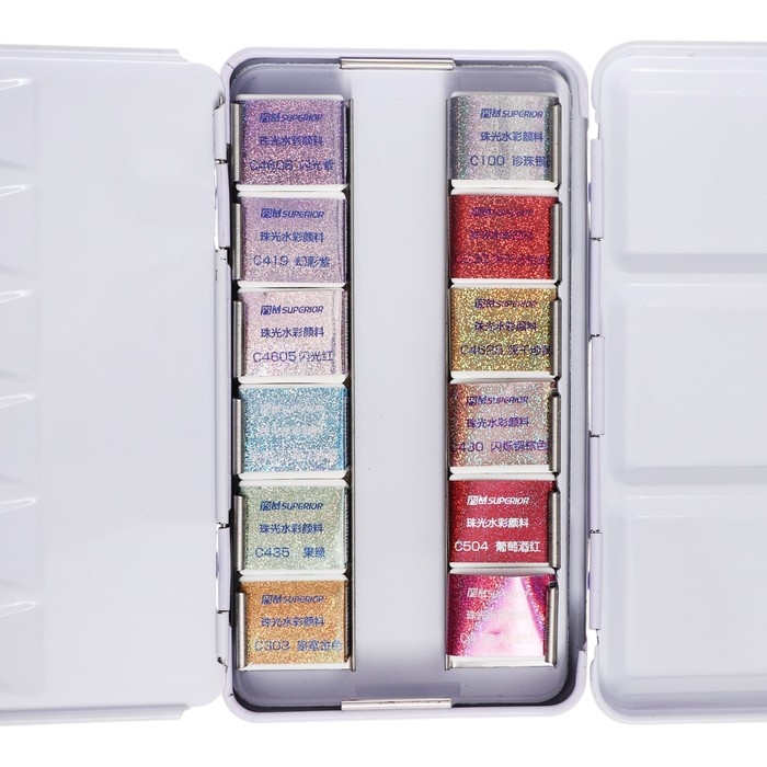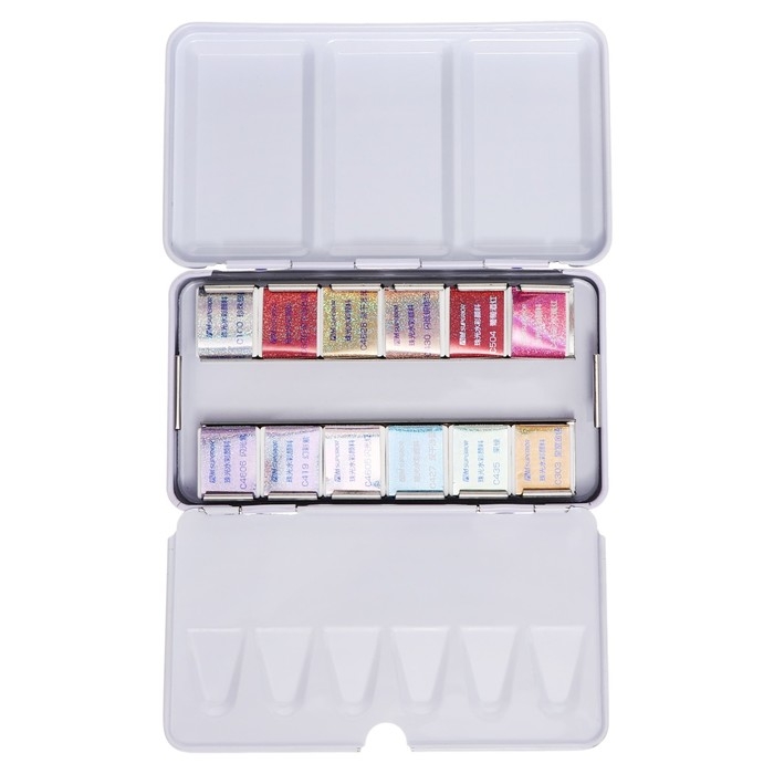 Краски акварельные, перламутровые, в металлической коробке, 12 цветов