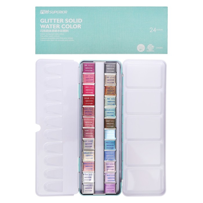 Краски акварельные, перламутровые, в металлической коробке, 24 цвета