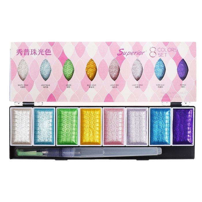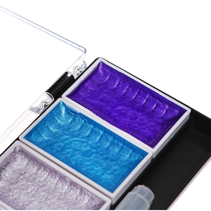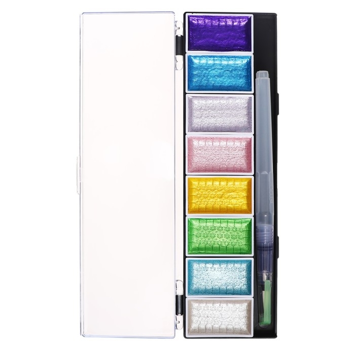 Краски акварельные, перламутровые, + кисть, в пластиковой коробке, 8 цветов