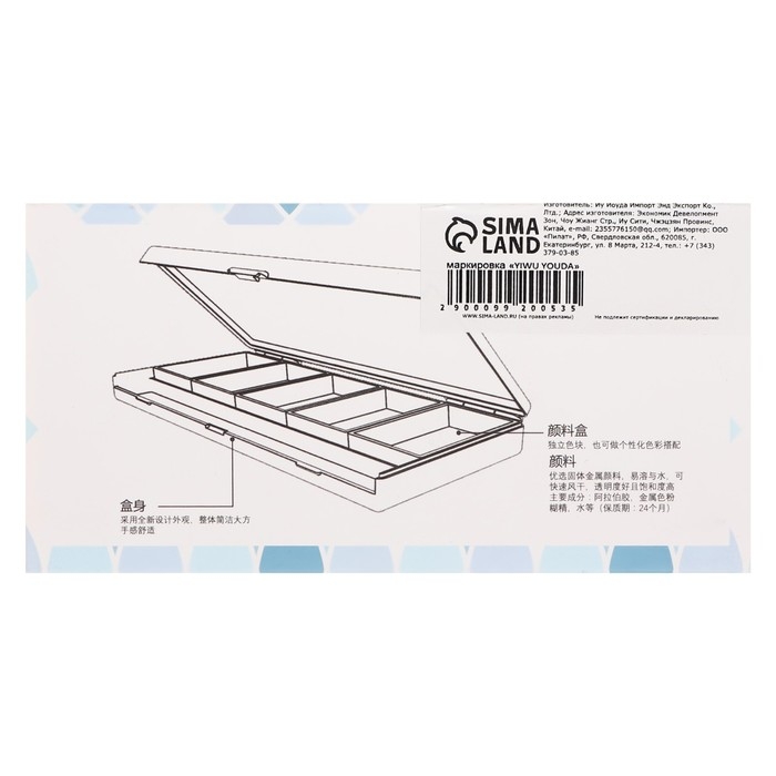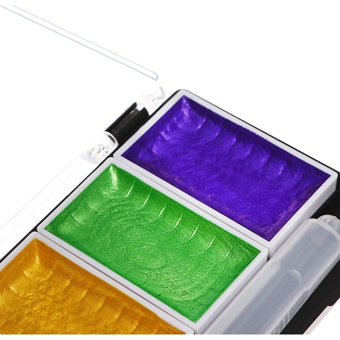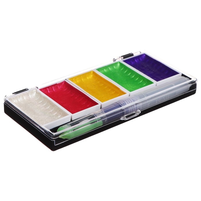 Краски акварельные, перламутровые, + кисть, в пластиковой коробке, 5 цветов