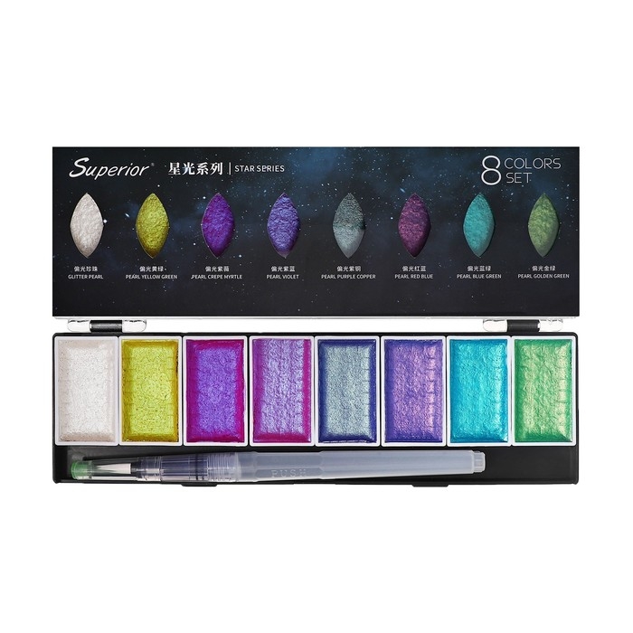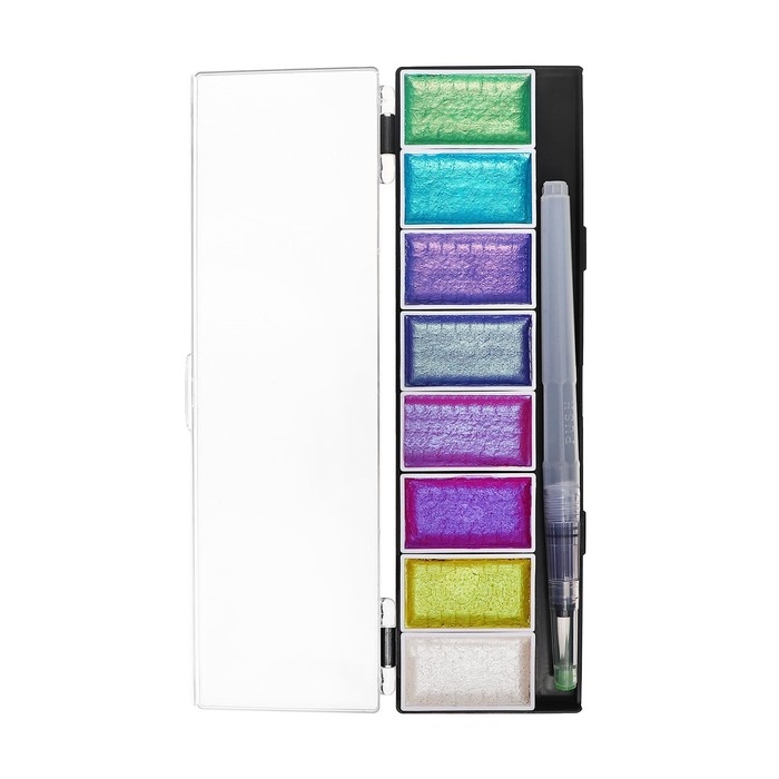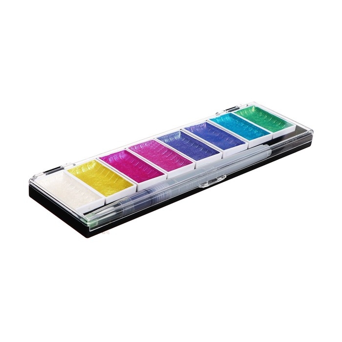 Краски акварельные, перламутровые, + кисть, в пластиковой коробке, 8 цветов