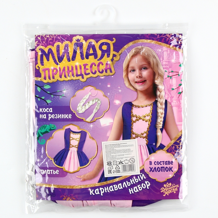 Карнавальный набор «Милая принцесса» — элегантный выбор для маленьких любительниц сказок. Комплект включает в себя красивое фиолетовое платье и косу на резинке, позволяя девочке почувствовать себя настоящей принцессой.