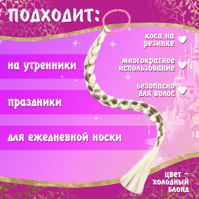 - Коса на резинке сделана из искусственного волоса, не содержащего вредных веществ. Она дополняет образ, делая его ещё более волшебным.