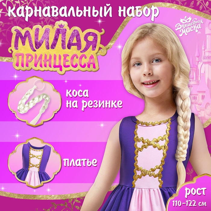Карнавальный набор «Милая принцесса» — элегантный выбор для маленьких любительниц сказок. Комплект включает в себя красивое фиолетовое платье и косу на резинке, позволяя девочке почувствовать себя настоящей принцессой.