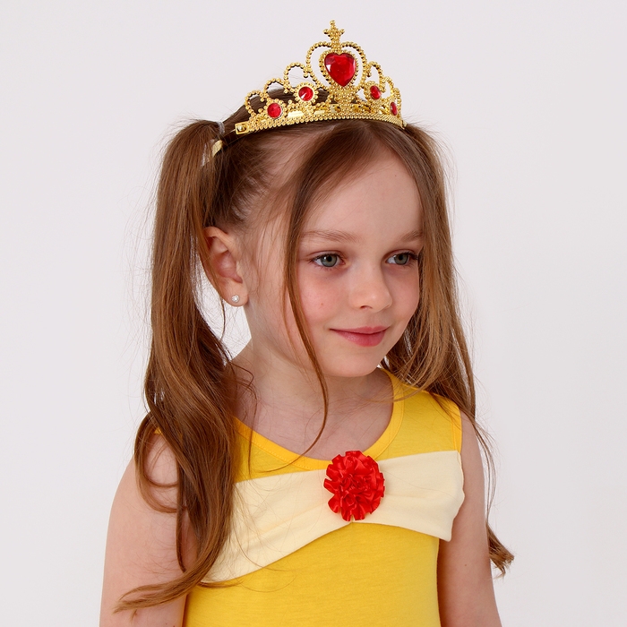 - Очаровательная корона, украшенная сверкающими камнями и нежным сердечком, станет завершающим штрихом в образе юной принцессы. Она надежно фиксируется на голове и не доставит дискомфорта.