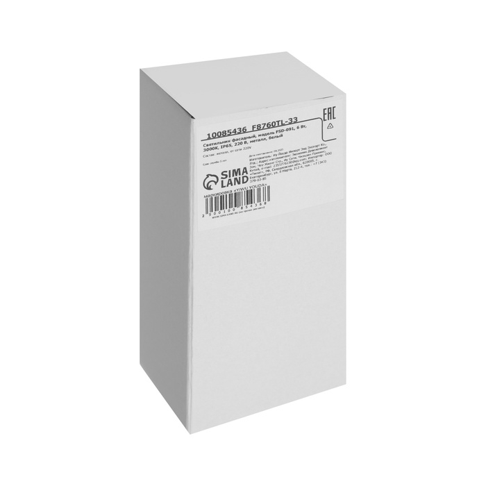 Светильник фасадный «Элегант», FSD-091, 6 Вт, 3000К, IP65, 220 В, металл, белый