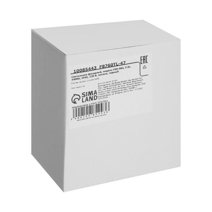 Светильник фасадный «Гранд», FSD-084, 5 Вт, 3000К, IP65, 220 В, металл, черный