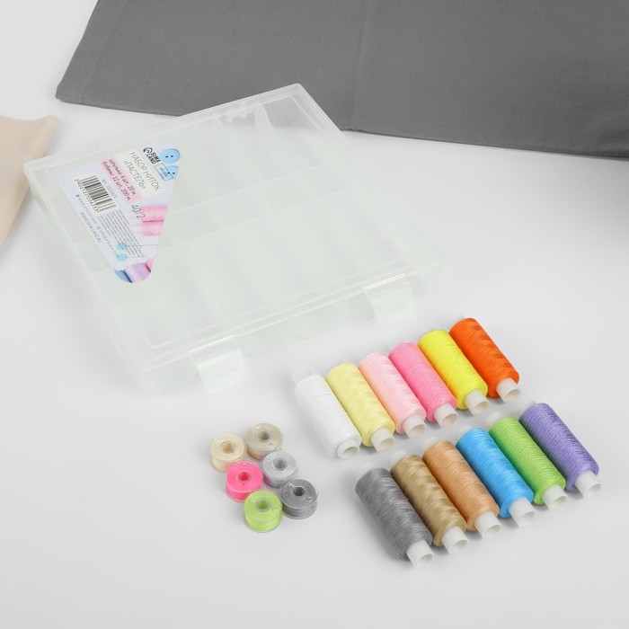 Набор ниток «Пастель», 40/2, 200 м, 18 шт, в органайзере, цвет разноцветный