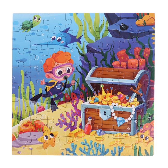 Пазлы 4 в 1 «Исследователи океана», 25, 36, 49, 64 элемента
