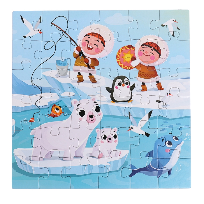 Пазлы 4 в 1 «Весёлая Арктика», 25, 36, 49, 64 элемента