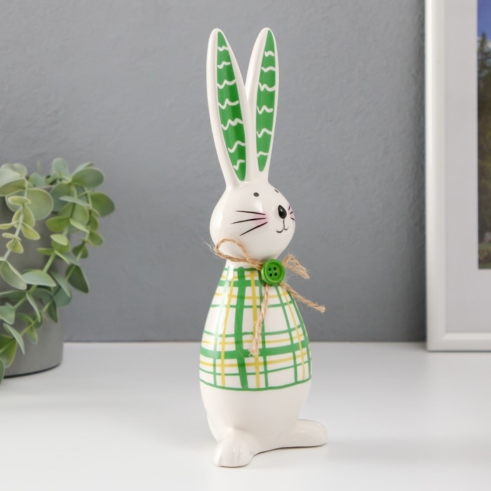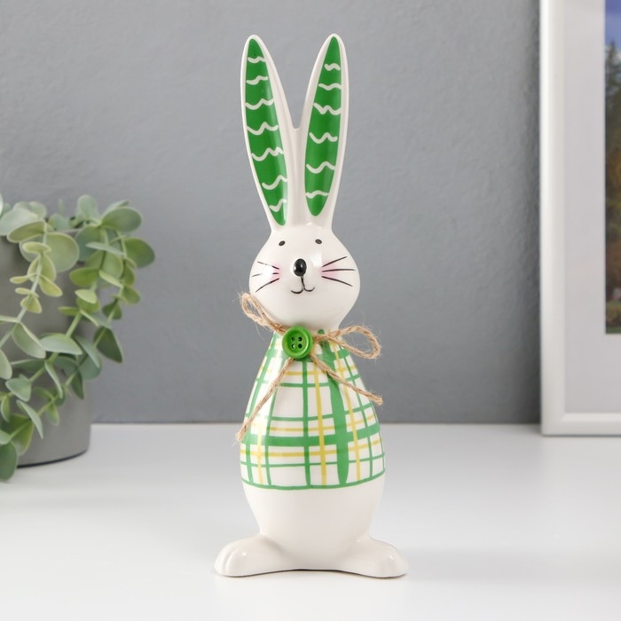 Сувенир керамика "Зайчонок, рубашка в клеточку" зелёный 7,8х6,3х22,2 см