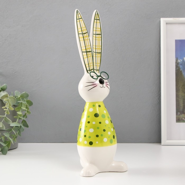 Сувенир керамика "Зайчонок в очках, рубашка в горох" жёлто-зелёный 10х7,5х30,5 см