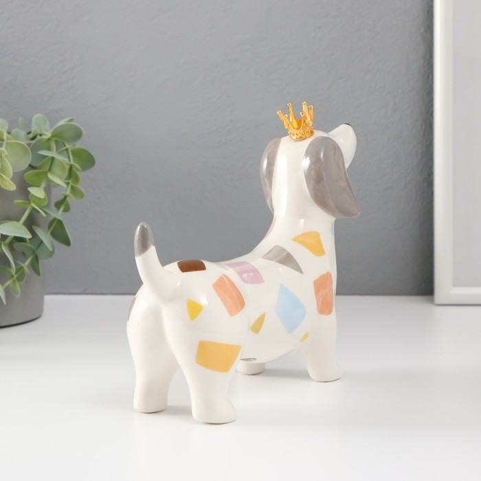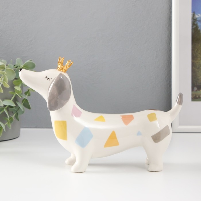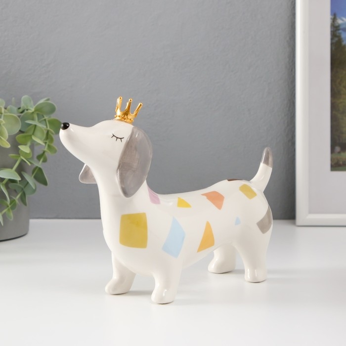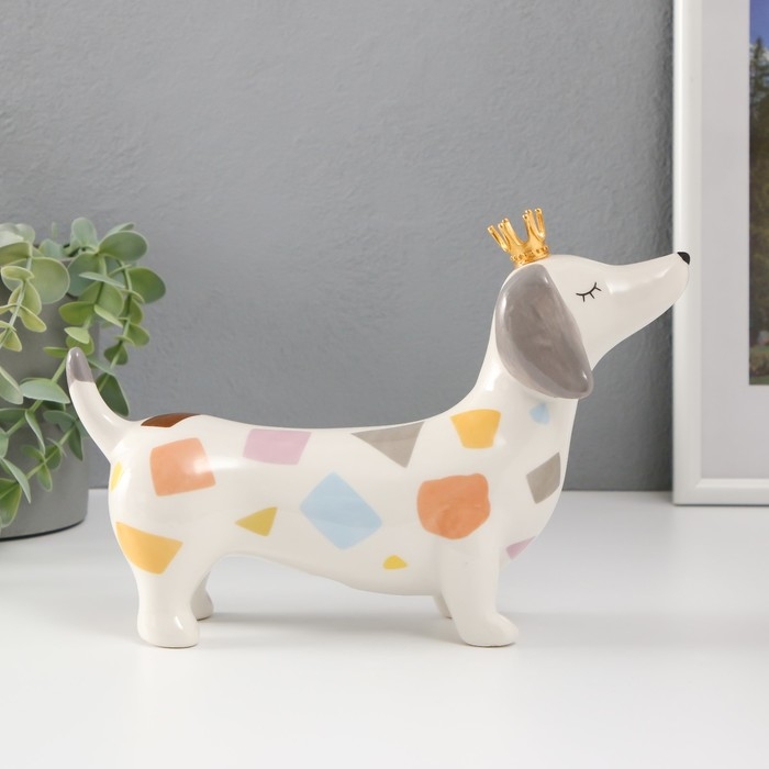 Сувенир керамика "Такса в короне" разноцветные пятна 23,2х6,2х15,8 см