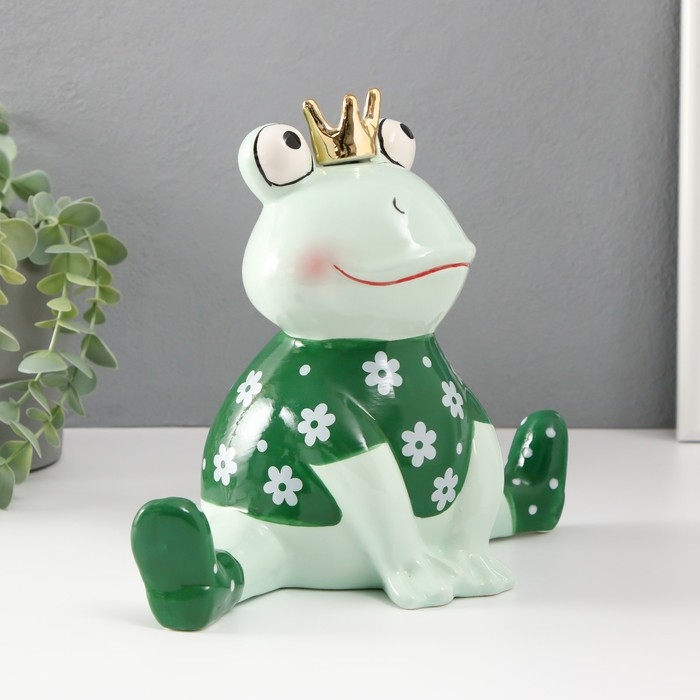 Сувенир керамика "Лягушонок в футболке с ромашками, в короне" 24,3х13,2х21,8 см