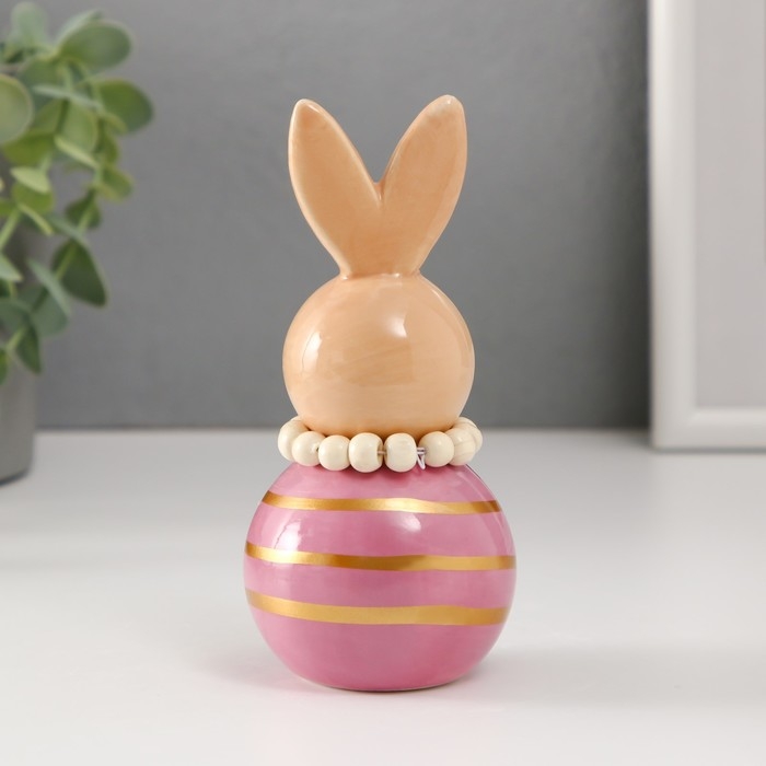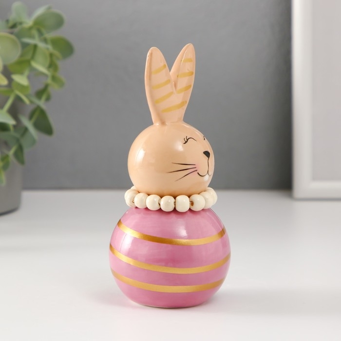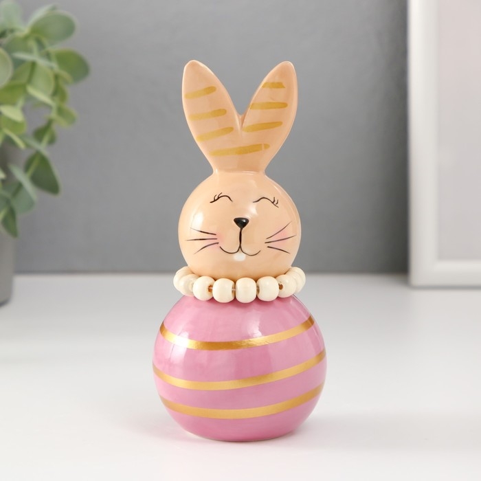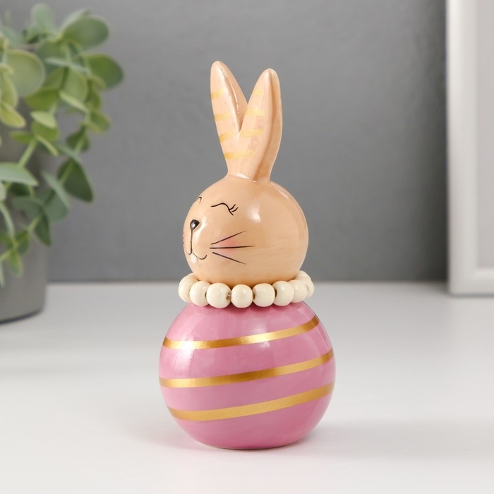 Сувенир керамика "Зайка-неваляшка с полосками" бежево-сиреневый 6,3х6,3х13,3 см