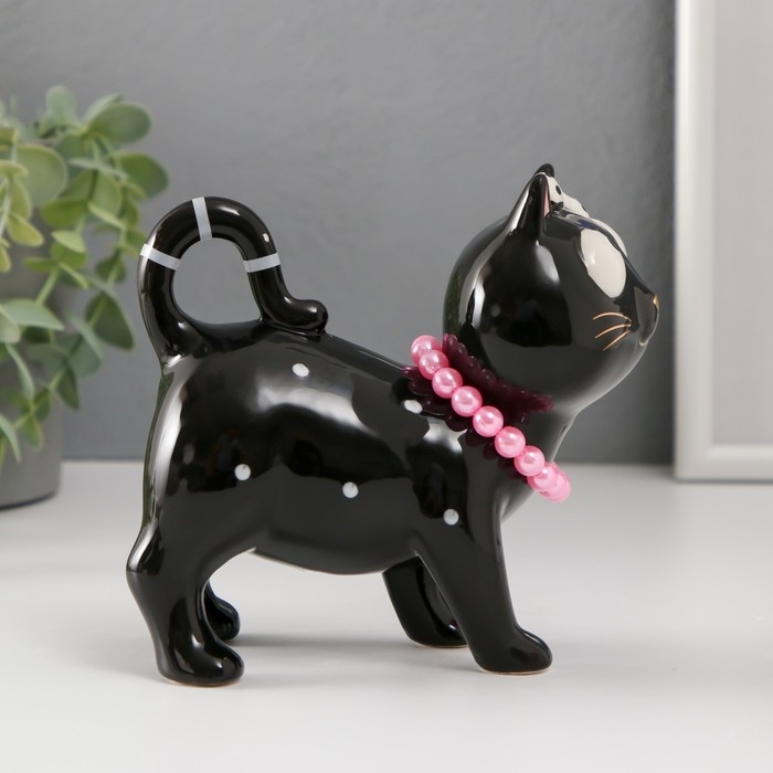 Сувенир керамика "Кошечка с бантом и ожерельем" чёрный 13,8х7,4х13 см