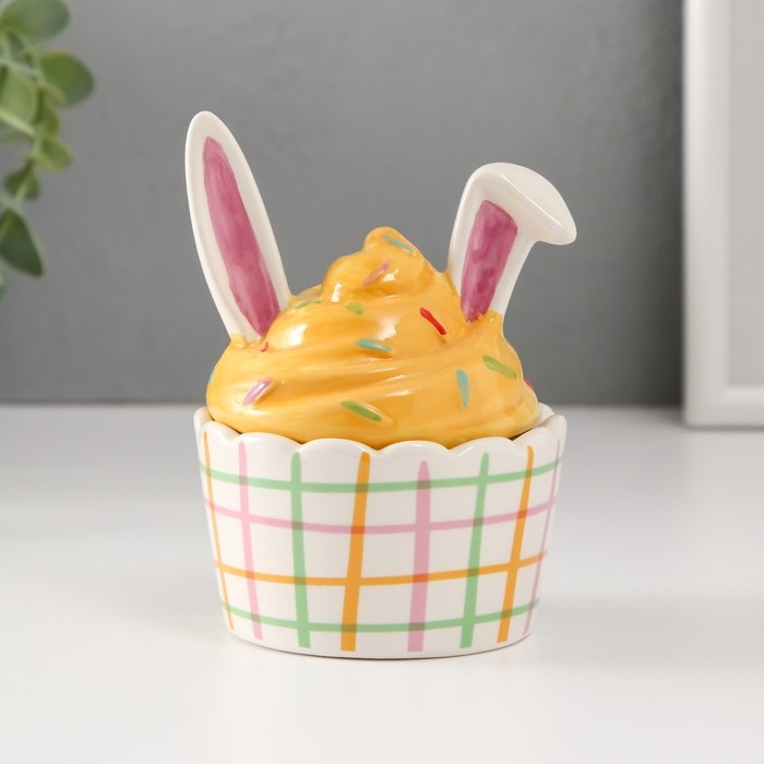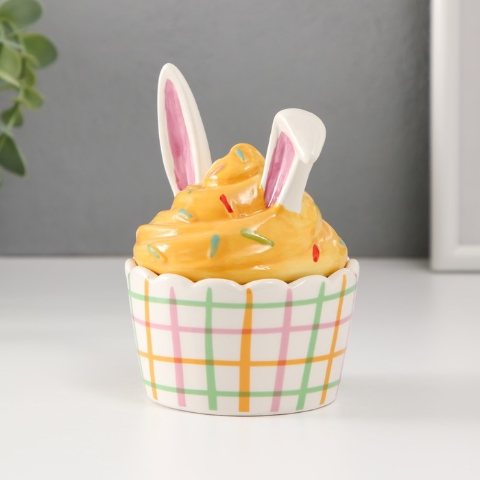 Шкатулка керамика "Пирожное с зайчьими ушками" 8,8х8,5х12 см