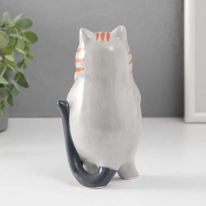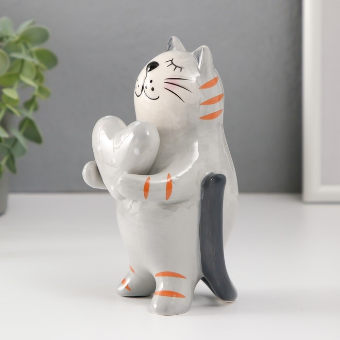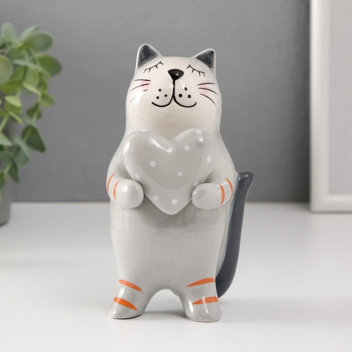 Сувенир керамика "Серый котик с сердцем в горох" 8,2х7,8х15 см
