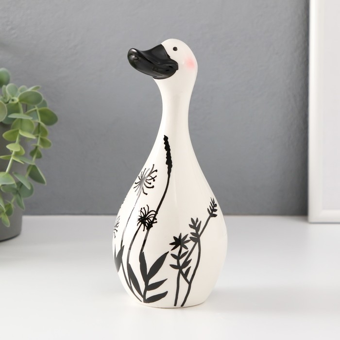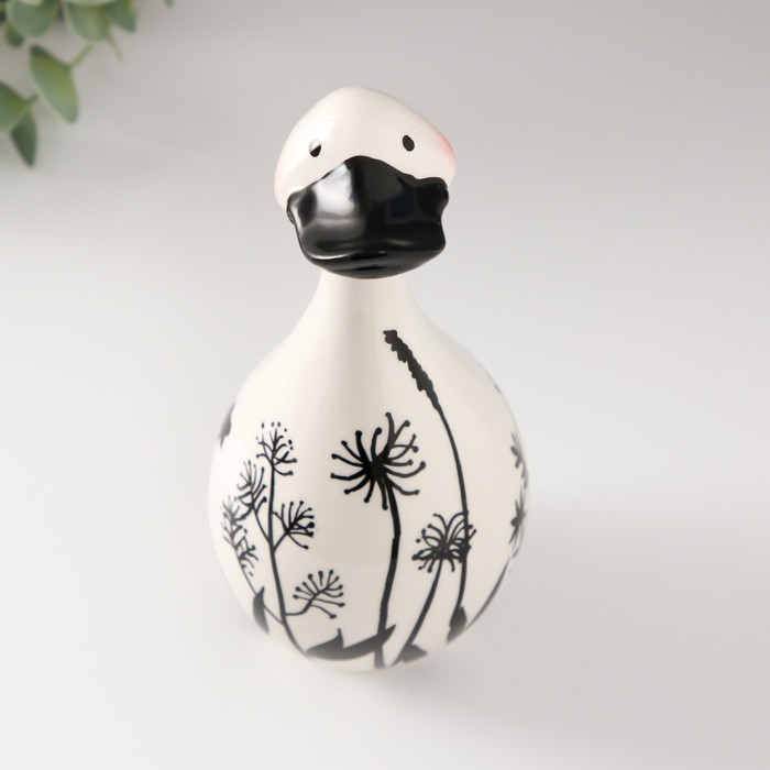 Сувенир керамика "Утка. Разнотравье" бело-чёрный 8,5х8,5х19,5 см