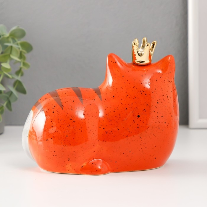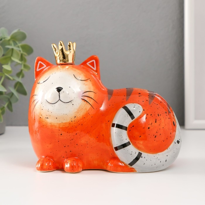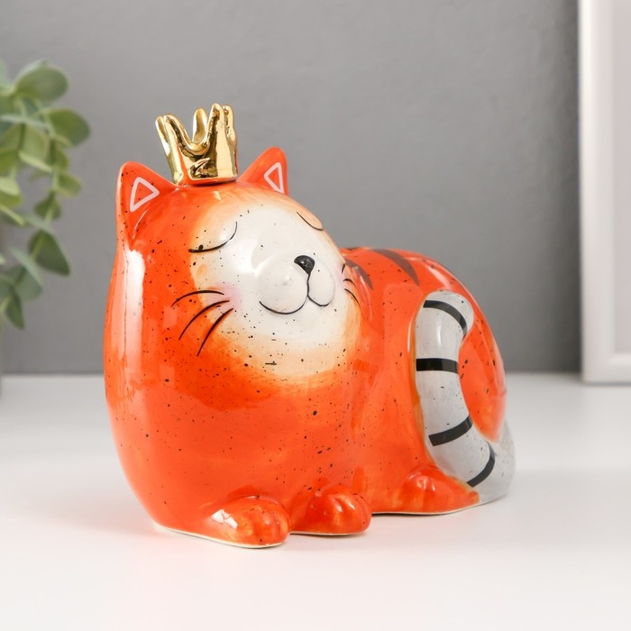 Копилка керамика "Спящая рыжая кошка в короне" 16,2х10,3х12,6 см
