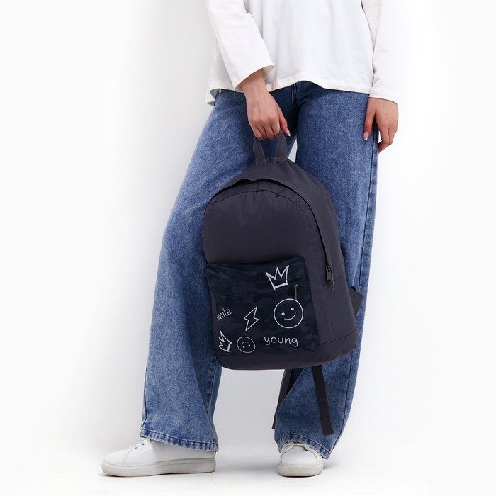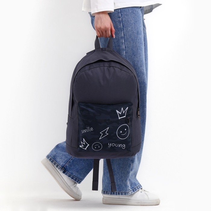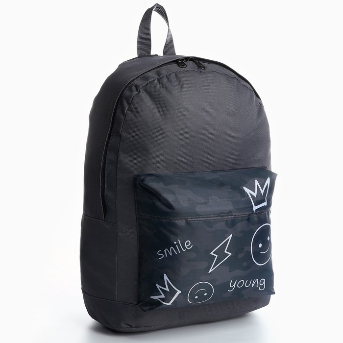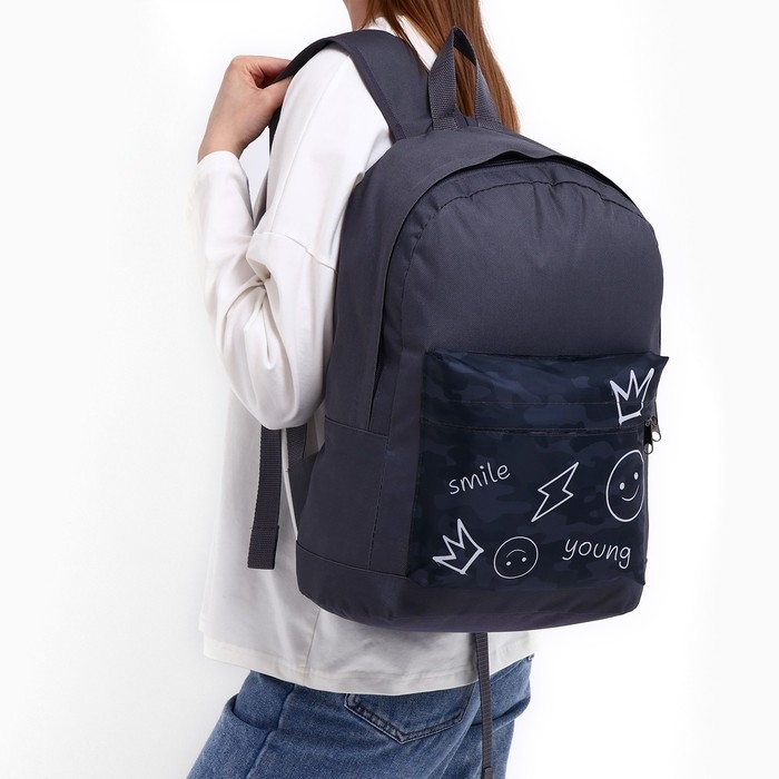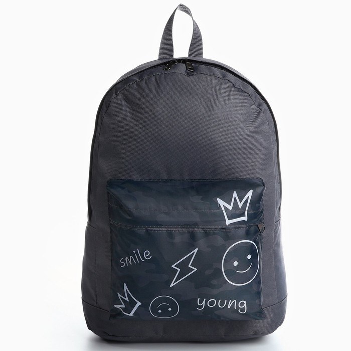 Рюкзак школьный молодёжный «Хаки», 33х13х37, отдел на молнии, н/карман, серый