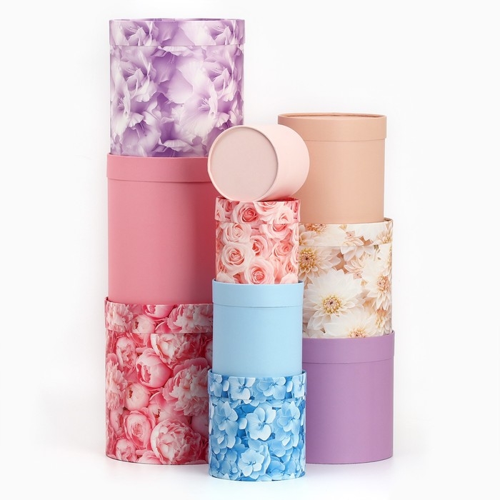 Набор круглых коробок 10 в 1, упаковка подарочная, «Цветочная нежность», 10 х 10 - 23.5 х 23.5 см