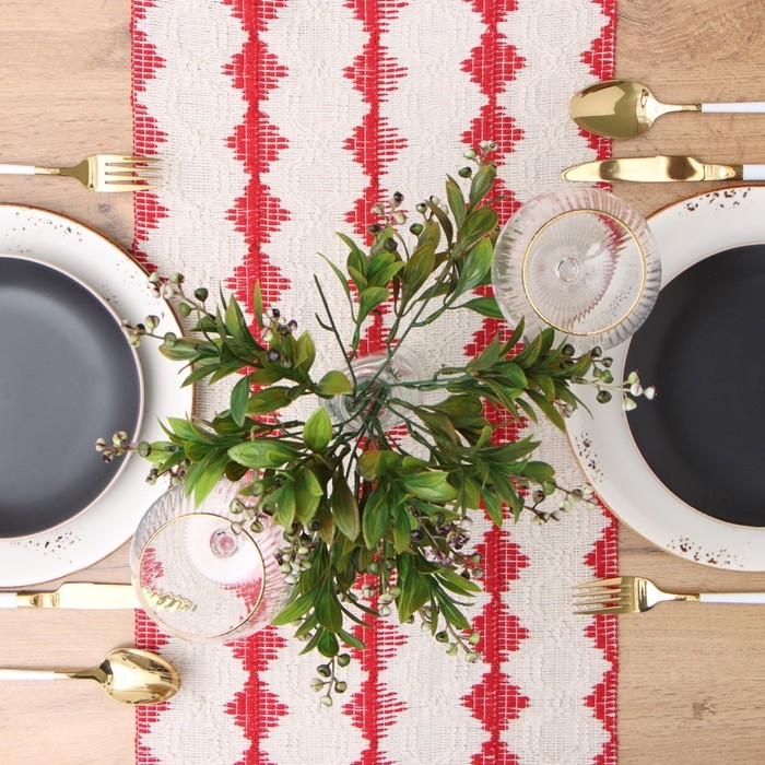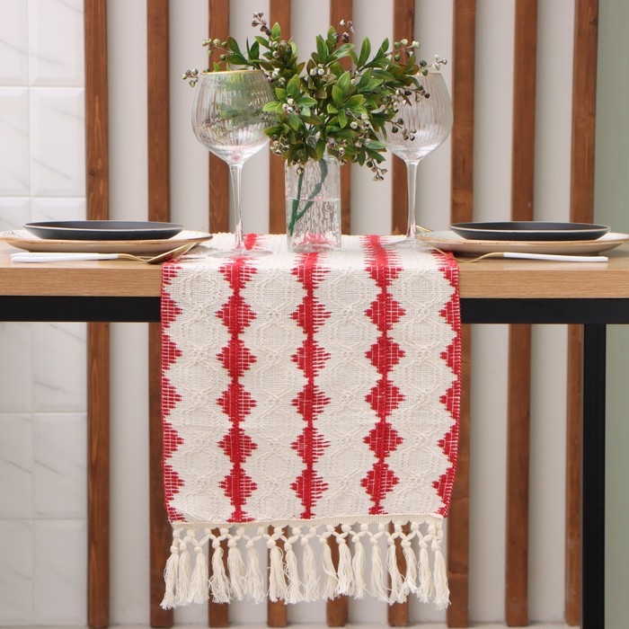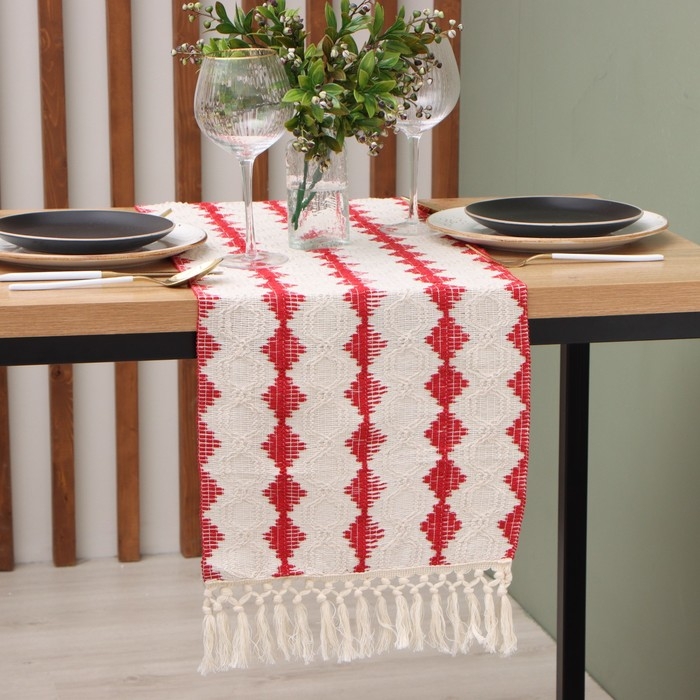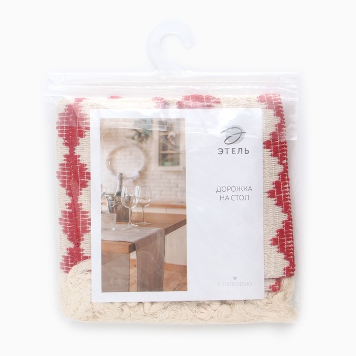 Дорожка Этель цв.беж/красный 32*180 см, 50% хлопок 50% п/э