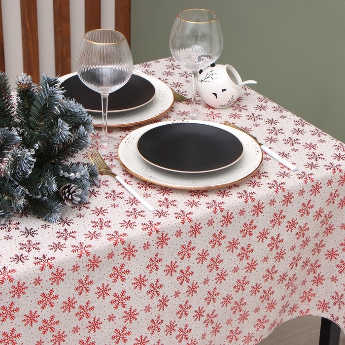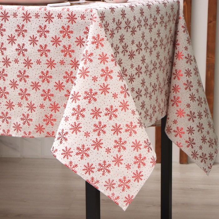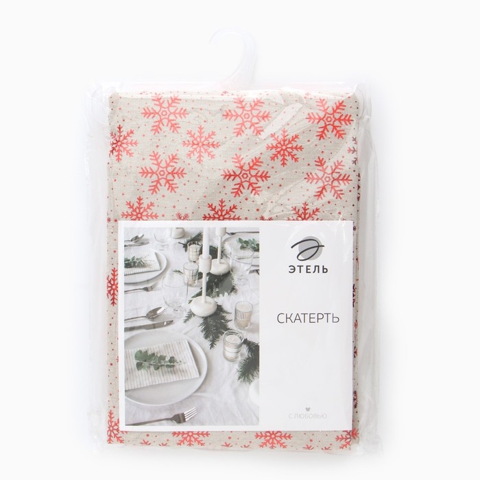 Скатерть Этель Снежинки 140*220 ±5 см, 80% п/э 20% лен, 120гр/м2
