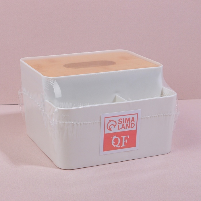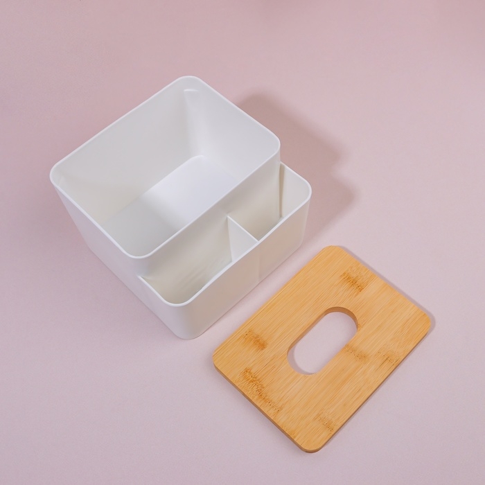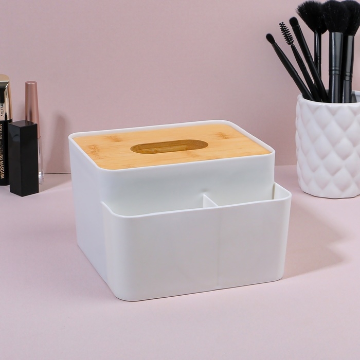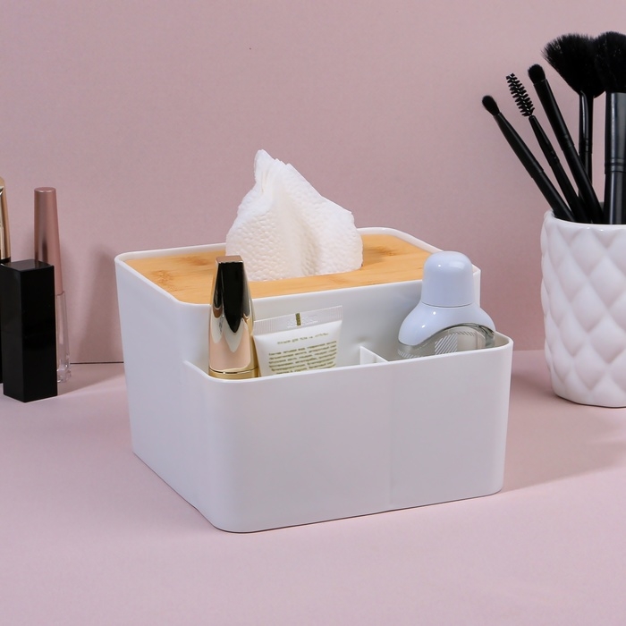 Органайзер для хранения «BAMBOO», с крышкой, 3 секции, 16 × 15 × 10 см, цвет белый/коричневый