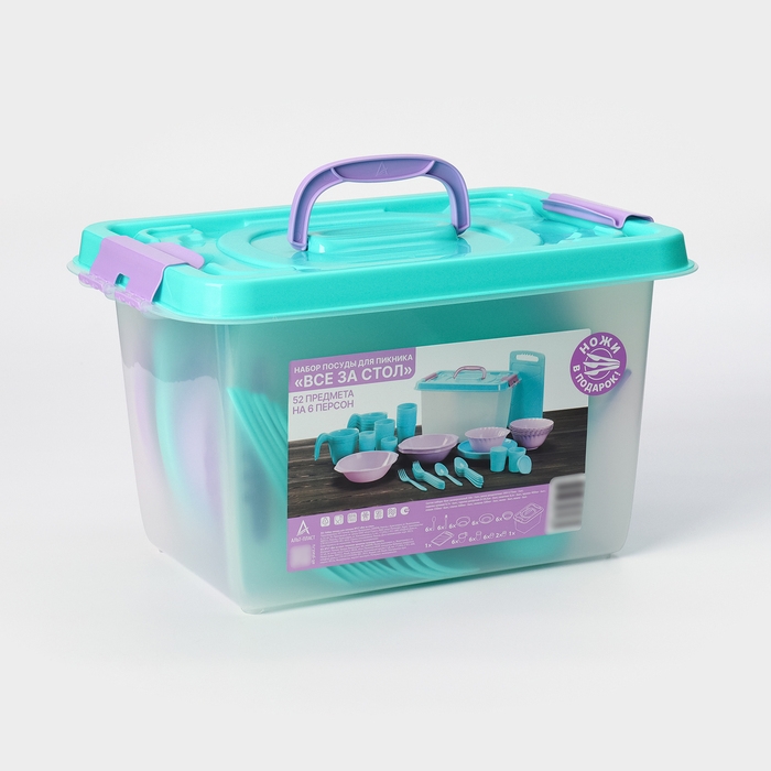 Набор посуды для пикника на 6 персон «Все за стол – 2», 52 предмета, цвет МИКС