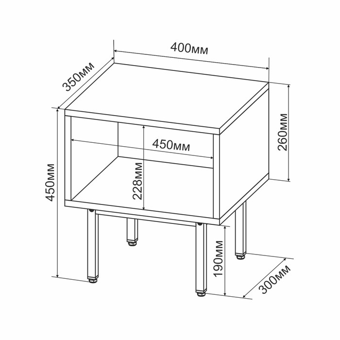 Тумба прикроватная 2 Мадера, 400х420х554, Графит